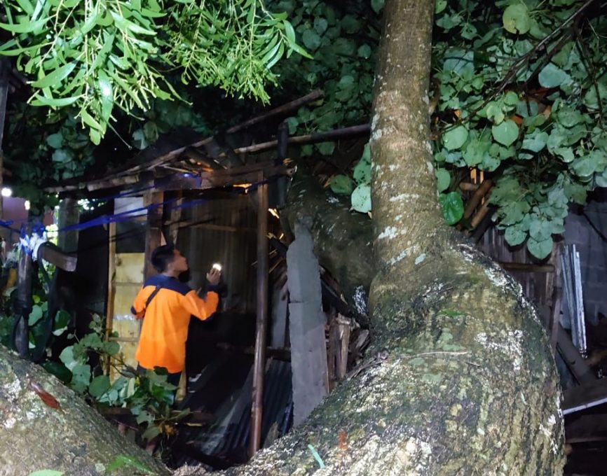 FOKUS JATENG- BOYOLALI- Sebatang pohon besar tumbang dan menimpa dua rumah, setelah diguyur hujan deras diikuti terjadinya angin kencang.