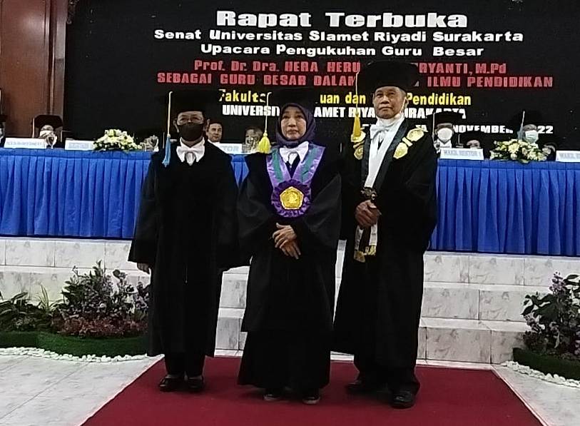 Prof. Dr. Dra. Hera Heru Sri Suryanti M.Pd yang dikukuhkan pada Sabtu 12 November 2022 adalah Guru Besar bidang Ilmu Pendidikan di FKIP Unisri.