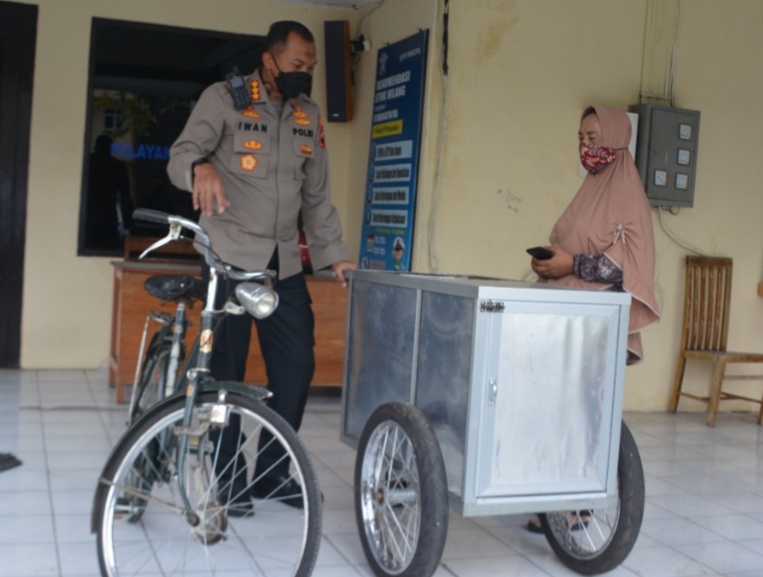 Selain menyerahkan gerobak dan sepeda, Kapolresta Surakarta juga memberikan uang santunan.