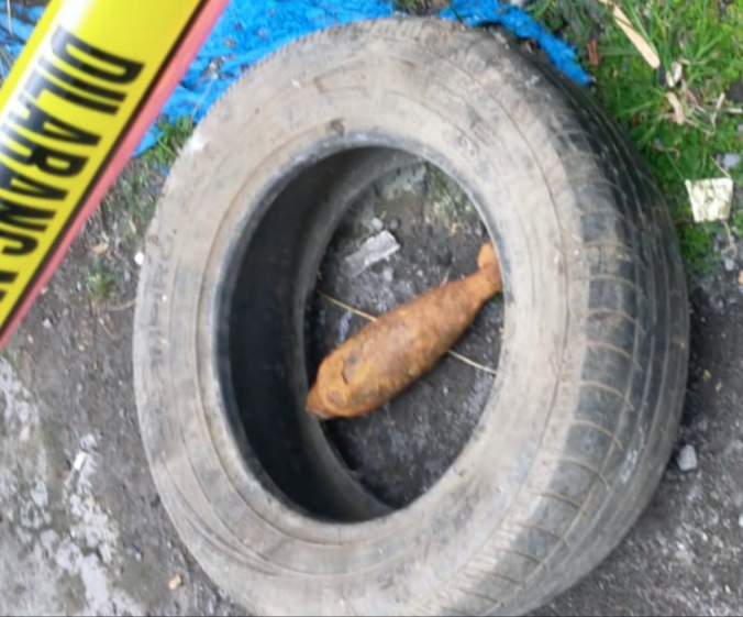 Sementara, polisi yang menerima laporan masyarakat menurunkan personil ke lokasi dan mengamankan dugaan peluru mortir itu di tengah-tengah ban bekas guna menghindari jangkauan warga serta dipasang police line.