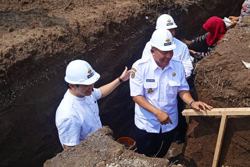 Wakil Bupati Boyolali Wahyu Irawan bersama Ketua DPRD Boyolali Marsono usai melakukan peletakan batu pertama pembangunan gedung rektorat dan perkuliahan baru Universitas Boyolali (yull/Fokusjateng.com)