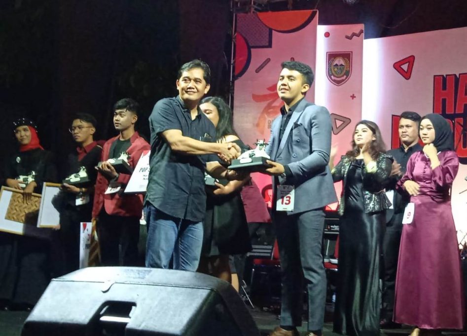Ketua DPRD Boyolali Marsono menyerahkan hadiah utama ke pemenang lomba pop singer hari Jadi ke -72 DPRD Boyolali (yull/Fokusjateng.com)