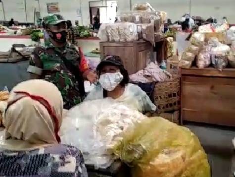 Sertu Wazin Babinsa Koramil Banyudono melaksanakan komsos dengan pedagang sayur serta pemantauan dan pengecekan harga sembako menjelang Natal dan Tahun Baru 2023 di Pasar Ngancar Banyudono (doc.0724/Fokusjateng.com)