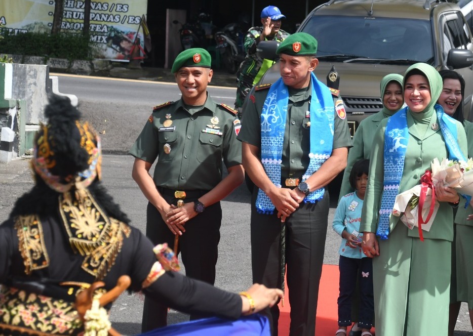 Kedatangan rombongan disambut oleh Dandim 0724/Boyolali Letkol Arm Ronald F Siwabessy dan Forkopimda Boyolali, kemudian disajikan tarian tradisional Topeng Ireng yang merupakan tarian khas Lereng Merapi dan Merbabu dilanjutkan menerima paparan satuan dari Dandim Boyolali. (ist)