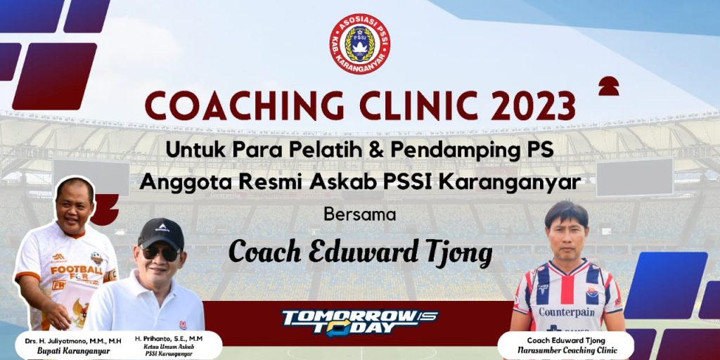 FOKUSJATENG.COM, KARANGANYAR – Asosiasi Kabupaten Persatuan Sepakbola Seluruh Indonesia (Askab PSSI) Karanganyar menggelar Coaching Clinic 2023 bersama Coach Eduward Tjong.