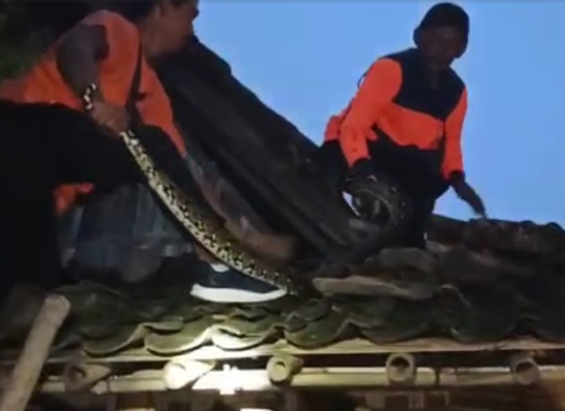 “Ini ular jenis piton kurang lebih 3,5 meter sampai 4 meteran, kesulitan karena kita harus membuka genteng banyak tumpukan kayu dibawah, kita upayakan jangan sampai masuk kesela sela kayu , karena kita akan semakin sulit jadi kita upayakan untuk memanjat genteng,” imbuhnya.