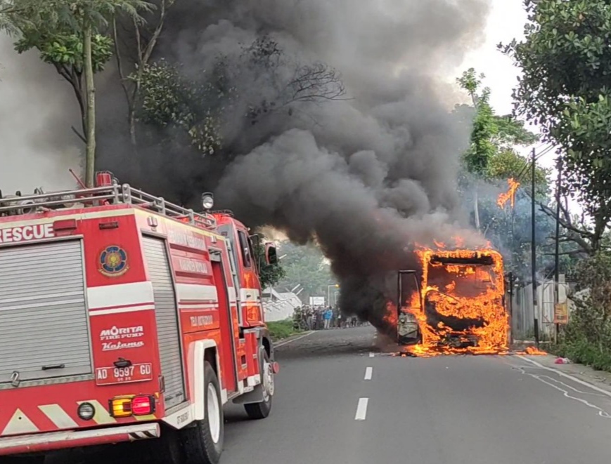 Pulang Piknik, Bus Rombongan Wisata Asal Kendal Terbakar di Boyolali