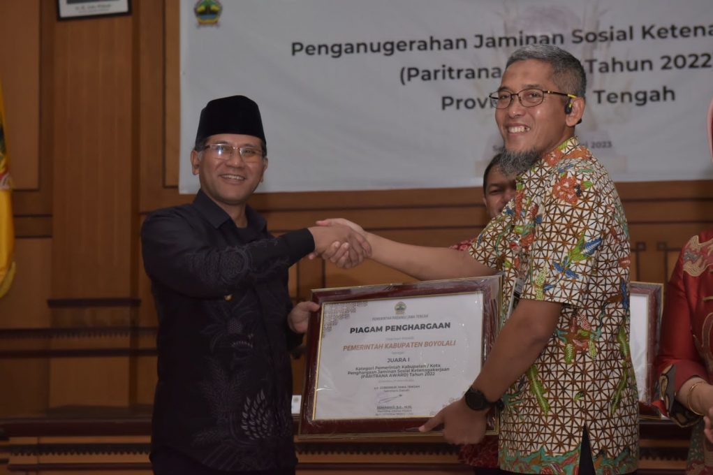 FOKUS JATENG-BOYOLALI Kabupaten Boyolali berhasil meraih gelar Juara pertama Penghargaan Jaminan Sosial Ketenagakerjaan atau Paritrana Award 2022 Kategori Kabupaten/Kota Terbaik.