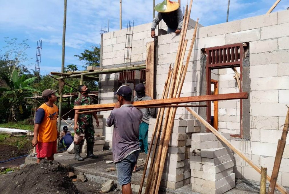 FOKUS JATENG-BOYOLALI-Babinsa Koramil 10 Sambi Kodim 0724 Boyolali Sertu Sajanji melaksanakan giat kerja bakti pembangunan rumah milik warga binaandi Dukuh Banaran Desa Trosobo Kecamatan Sambi Kabupaten Boyolali, pada Jumat 27 Januari 2023.