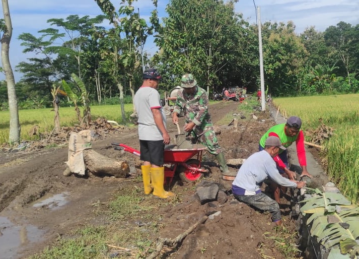 FOKUS JATENG- BOYOLALI- Prajurit TNI Kodim 0724 Boyolali bersama warga setempat mengikuti kegiatan Pra TNI Manunggal Membangun Desa (TMMD) Sengkuyung Tahap I Kodim 0724/Boyolali TA. 2023 di Dukuh Jetis, Desa Blagung Kecamatan Nogosari, Kabupaten Boyolali. Minggu 12 Pebruari 2023. Kegiatan Pra TMMD Sengkuyung tahap I TA. 2023 yang dilaksanakan di Jetis Desa Blagung, Kecamatan Simo memperlihatkan kemanunggalan TNI dengan Masyarakat.