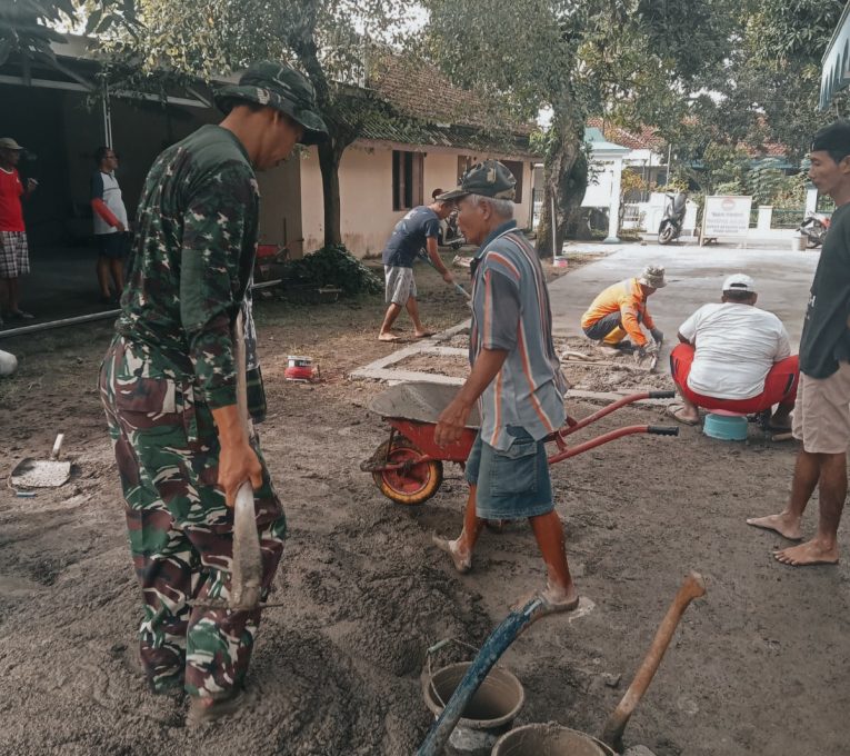FOKUS JATENG-BOYOLALI- Mendekati bulan suci Ramadhan, Bintara Pembina Desa (Babinsa) Koramil 10/Sambi Kodim 0724/Boyolali Serma Lalu Gde bersama Warga melaksanakan gotong royong pengecoran halaman masjid di dukuh Kalikijing, Desa Cermo Kecamatan Sambi, Kabupaten Boyolali. Sabtu 25 Pebruari 2023.