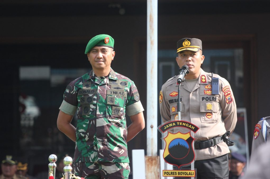 Apel gabungan TNI Polri ini dipimpin langsung oleh Dandim 0724/Boyolali Letkol Arm Ronald F Siwabessy dan Kapolres Boyolali AKBP Petrus Parningotan Silalahi (doc/Fokusjateng.com)