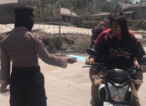 Petrus menjelaskan pihaknya bersama dengan TNI, BPBD, satuan Brimob dan relawan telah berkoordinasi dan standby untuk menyiapkan jalur-jalur evakuasi jika terjadi erupsi susulan. Ditengah kesiagaan tersebut polisi juga membagikan masker bagi warga yang melintas.