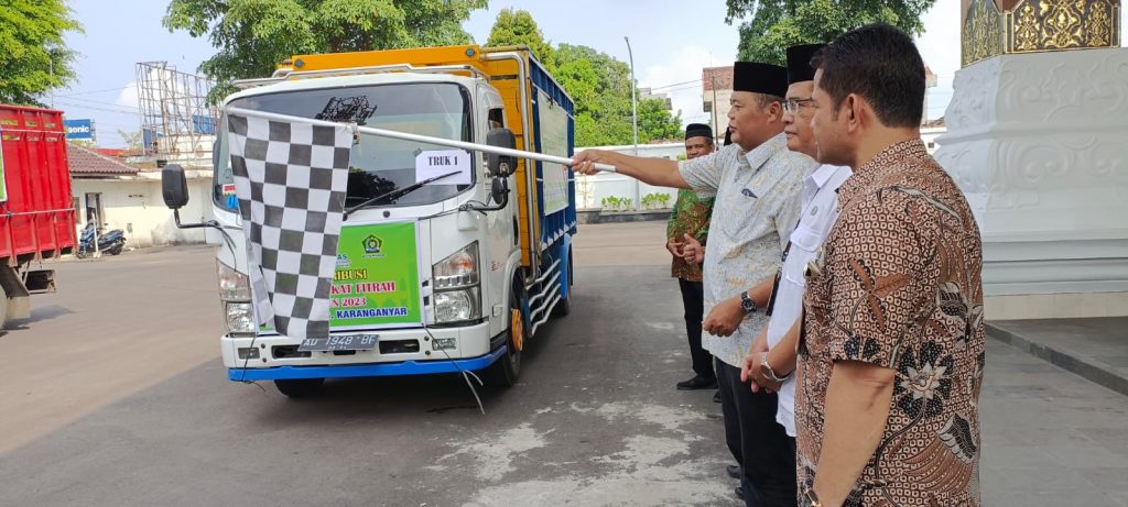 Penyaluran beras zakat dilepas Bupati Karanganyar Juliyatmono di Pendopo Rumdin Bupati Karanganyar, Selasa (18/4) pagi. Beras zakat ini akan disalurkan ke 17 kecamatan di Kabupaten Karanganyar.