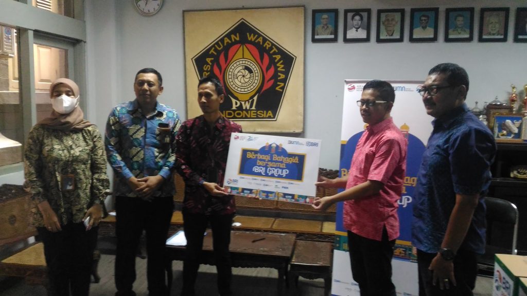 FOKUS JATENG–SOLO– Guna menjalin silaturahmi dengan insan pers yang tergabung dalam Persatuan Wartawan Indonesia (PWI) Surakarta, Bank Rakyat Indonesia (BRI) Cabang Surakarta memberikan 50 bingkisan Lebaran kepada pers. Silaturahmi ini sudah menjadi komitmen Bank BRI, karena selama ini pers sudah membantu dengan pemberitaan-pemberitan positif dan membangun.