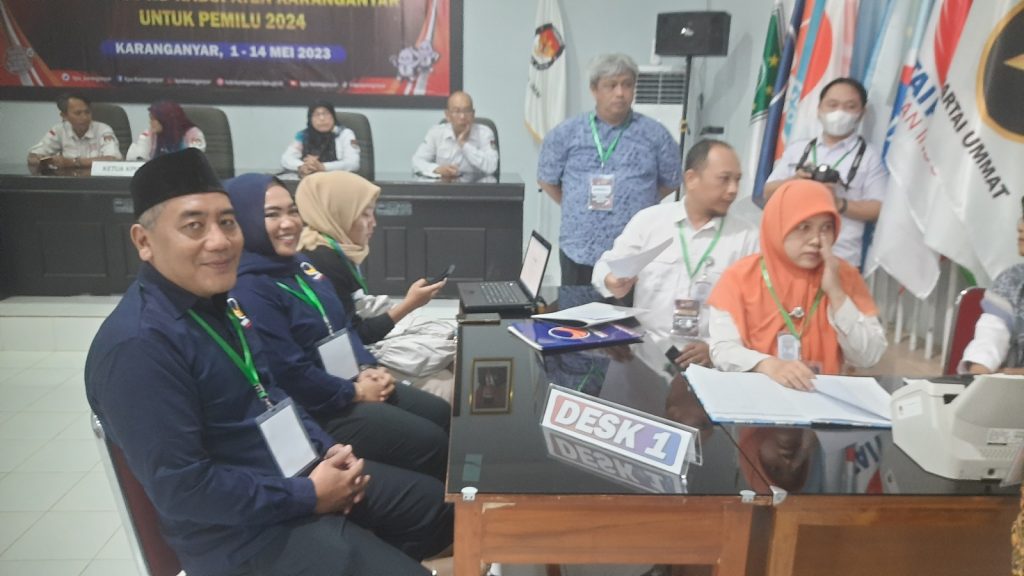 FOKUSJATENG.COM, KARANGANYAR – Jajaran Pengurus Dewan Pimpinan Daerah (DPD) Partai Nasional Demokrat (Nasdem) hari ini mendaftarkan bakal calon legislatif (Bacaleg) di kantor KPU Karanganyar. Nasdem merupakan partai kedua yang mendaftarkan Bacalegnya, setelah sebelumnya PKS telah mendatangi KPU.