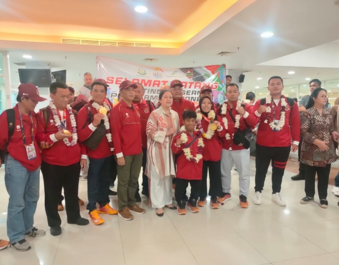 Puan pun menyambut kedatangan para atlet ini di bandara Adi Soemarmo Boyolali, Sabtu 10 Juni 2023.