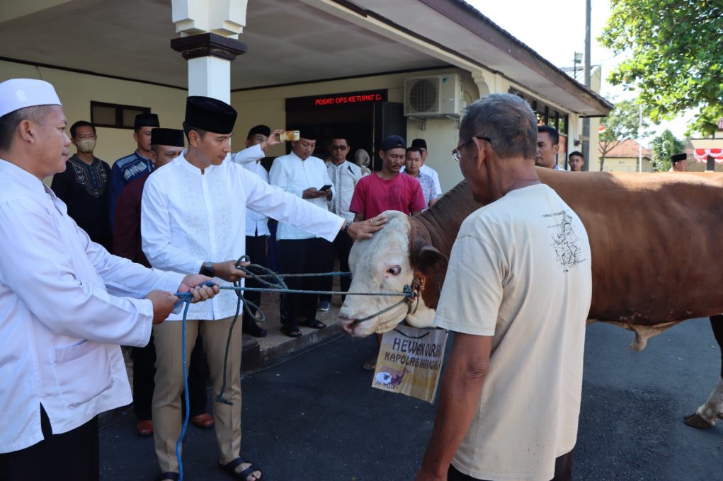 Dalam kegiatan ini Kapolres Karanganyar menyampaikan bawah pada hari raya Idhul Adha 1444 H ini, Polres Karanganyar menyembelih 7 ekor sapi dan 12 ekor kambing.