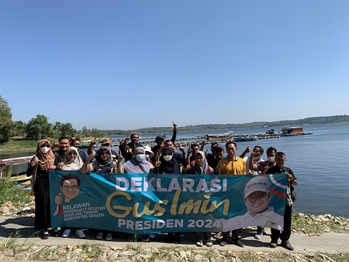 Deklarasi digelar di kompleks Karamba Waduk Kedungombo (WKO) wilayah Desa Ngargotirto, Kecamatan Sumberlawang, Sragen, Rabu (26/07). Komunitas yang mayoritas pemuda dan pemudi itu sepakat mendukung Gus Imin memenangkan kontestasi pilpres mendatang. “Beliau (Gus Muhaimin, Red) sangat perhatian kepada rakyat kecil, termasuk para nelayan ikan air tawar,” kata Hasnanto, koordinator Komunitas Pemerhati Nelayan Waduk Kedungombo Sragen, di sela deklarasi.