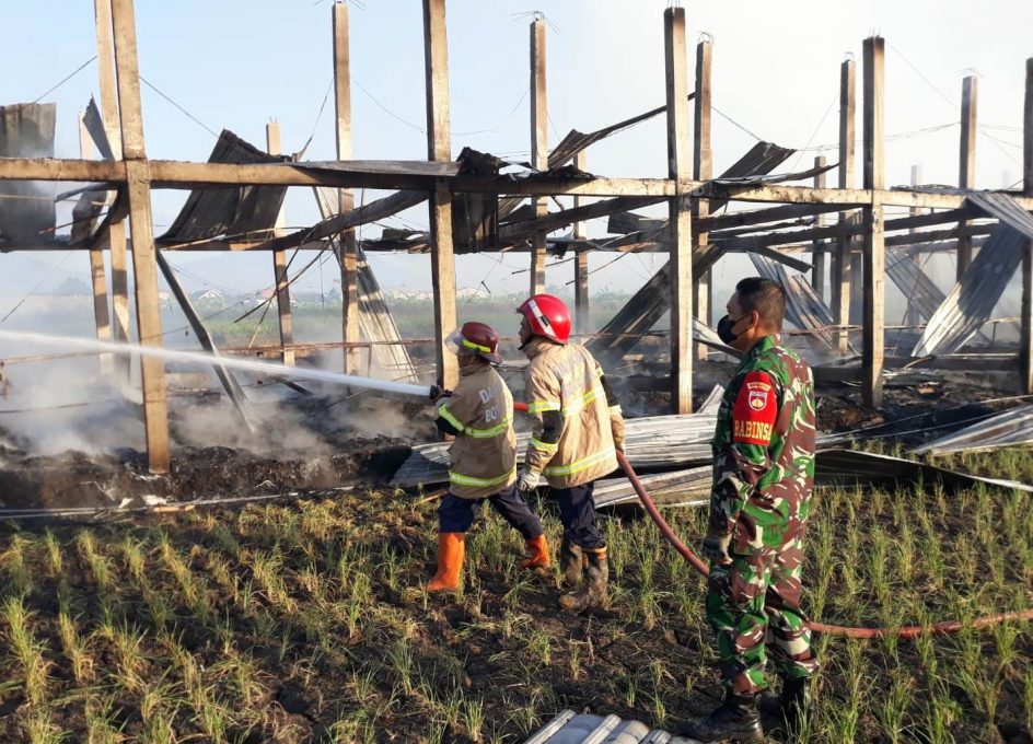 Api dengan cepat membakar kandang seisinya. Saat kebakaran, di dalam kandang berukuran 6 x120 meter persegi tersebut berisi puluhan ribu ekor ayam potong. Dalam sekejap, kandang semi permanen tersebut ambruk rata dengan tanah.