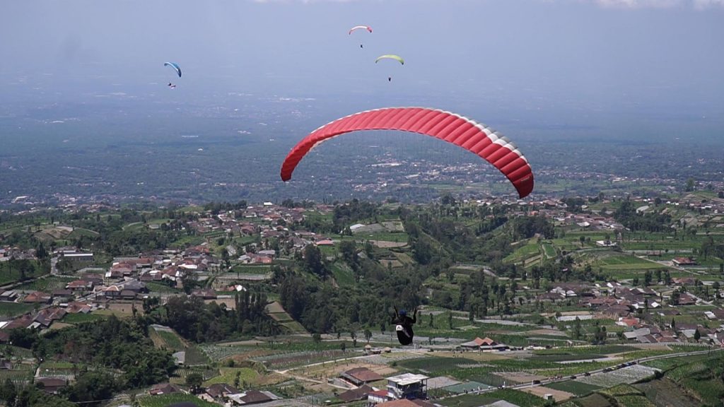 FOKUS JATENG-BOYOLALI- Ada wisata olah raga dirgantara, Paralayang di lereng timur Gunung Merbabu tepatnya di Desa Tarubatang Kecamatan Selo, Boyolali.