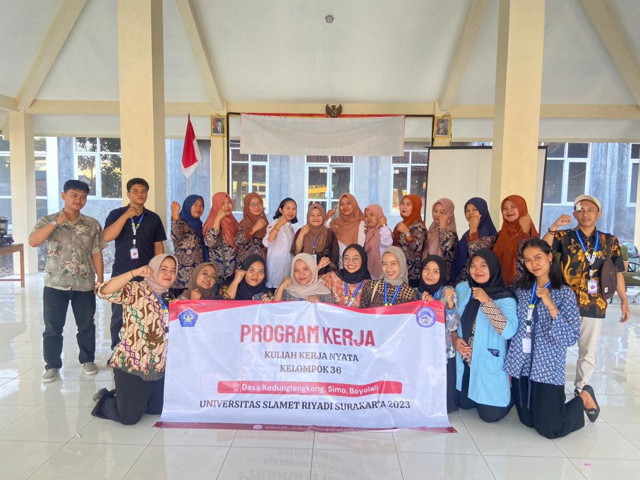 FOKUS JATENG-BOYOLALI – Kuliah Kerja Nyata Pembelajaran Pemberdayaan Masyarakat (KKN-PPM) Universitas Slamet Riyadi (UNISRI) Tahun 2023 mengusung tema “UNISRI Ikut serta Meningkatkan Kesejahteraan Rakyat Melalui Perbaikan Stunting Ekonomi Ekstrim dan Sanitasi Lingkungan, ” di Balai Desa Kedunglengkong, Kecamatan Simo, Kabupaten Boyolali, Provinsi Jawa Tengah, pada Rabu, 9 Agustus 2023.