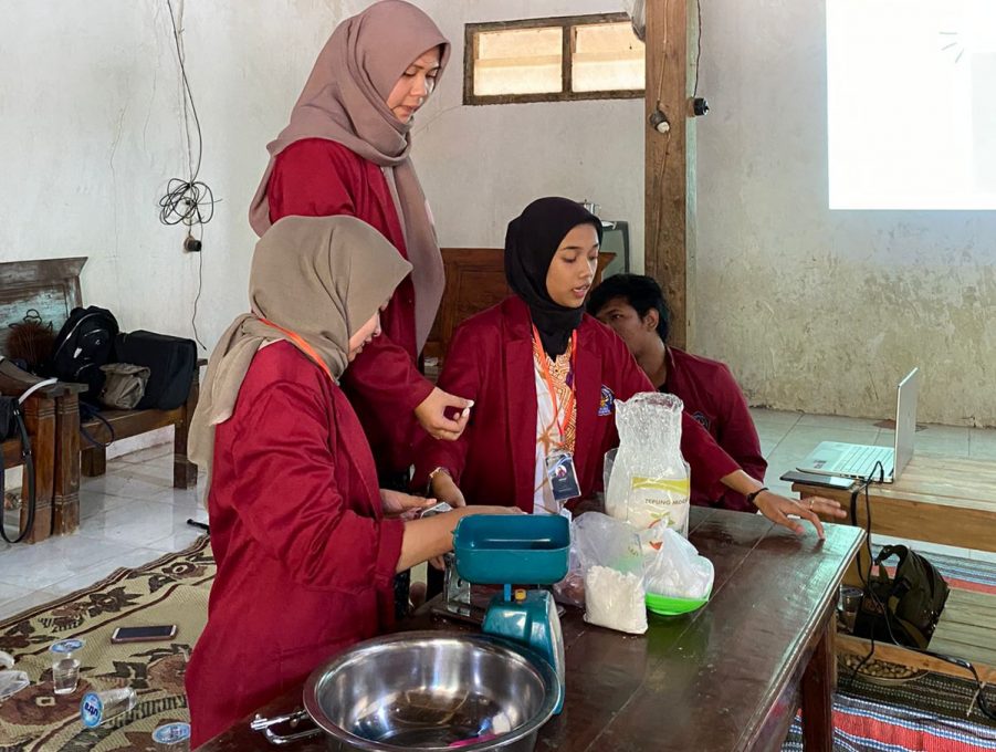 Menurut Anggun, pengabdian ini mempunyai tujuan untuk memberikan pengetahuan dan pengajaran mengenai pembuatan tepung mocaf dan penggunaannya, sebagai bahan dasar pengganti tepung terigu dalam pembuatan mie, sehingga dapat membantu ibu-ibu di Desa Polokarto dalam memenuhi kebutuhan mereka membuat mie dari tepung mocaf, dengan harapan hasil produk dapat dijual sehingga dapat menambah income bagi keluarga mereka.