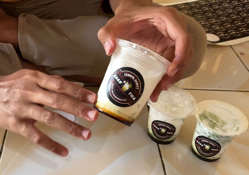 Kemasan cendol dawet setelah berlabel sticker nama produk dan sosial media produk cendol dawet (doc/Fokusjateng.com)