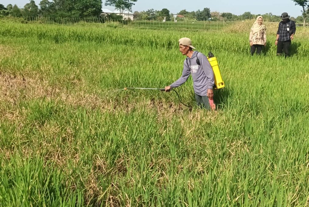 Dispertan Boyolali menggelar gerakan penyemprotan bersama di areal persawahan Desa Jembungan, Kecamatan Banyudono. (doc/Fokusjateng.com)
