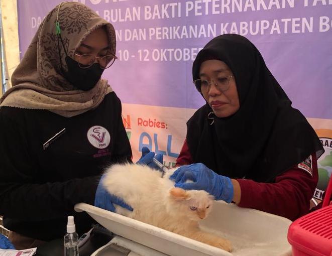 GRATIS : Petugas kesehatan bersiap menyuntikkan vaksin rabies ke seekor kucing di acara Bulan Bakti Peternakan di kawasan kantor Dinas Peternakan dan Perikanan (Disnakkan) Boyolali (doc/Fokusjateng.com)