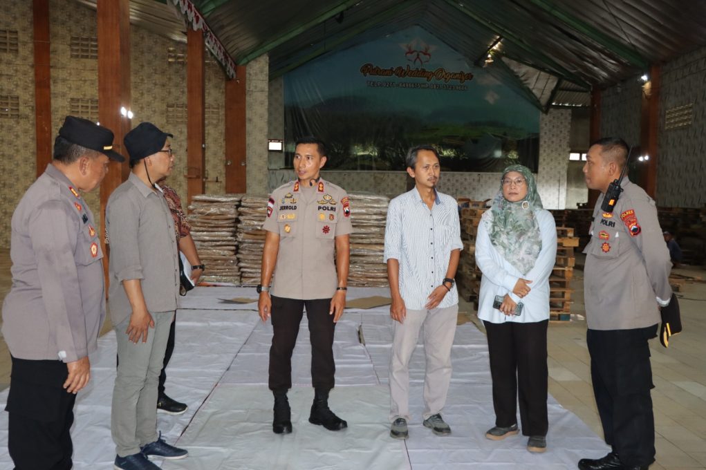 Kapolres yang didampingi para Pejabat Utama Polres Jaranganyar, Kapolsek Tasikmadu serta dari pihak KPU dan Bawaslu umemastikan kesiapan gedung logistik dan teknis pengelolaan dan rencana pengamanan logistik dari penyelenggaraan pemilu KPU Karanganyar.