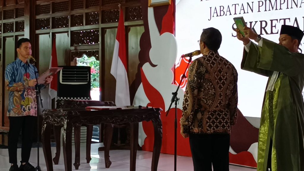 Walikota Solo Gibran Rakabuming Raka melantik Sekretaris daerah Kota Solo hari ini 01/12/2023 di Pendhapi Gede Balaikota Solo Jawa Tengah (nur/Fokusjateng.com)