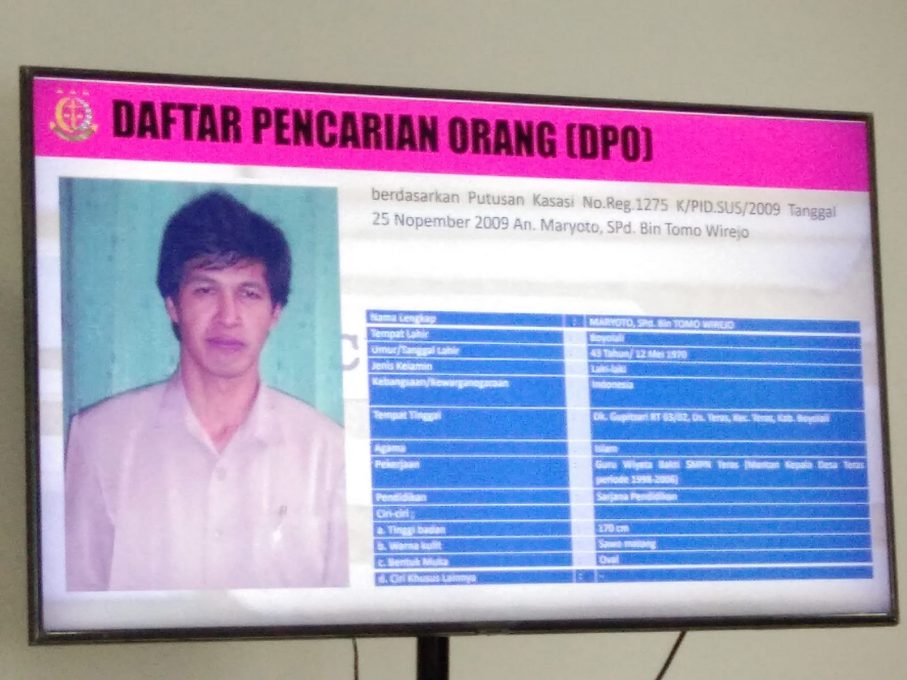 Kajari Boyolali Agita Tri Moertjahjanto melalui Kasi Pidana Khusus (Pidsus) Kejari Boyolali, Romli Mukayatsyah, menegaskan kepada sahabat maupun pihak yang mengetahui para buronan tersebut untuk segera menyerahkan dan memberitahu keberadaannya. Dijelaskan, sejak awal kasus itu bergulir, Maryoto tidak dilakukan penahanan. Hingga akhirnya, pengadilan Negeri (PN) Boyolali memutuskan Maryoto bersalah melakukan tindak pidana korupsi pada 11 September 2008.