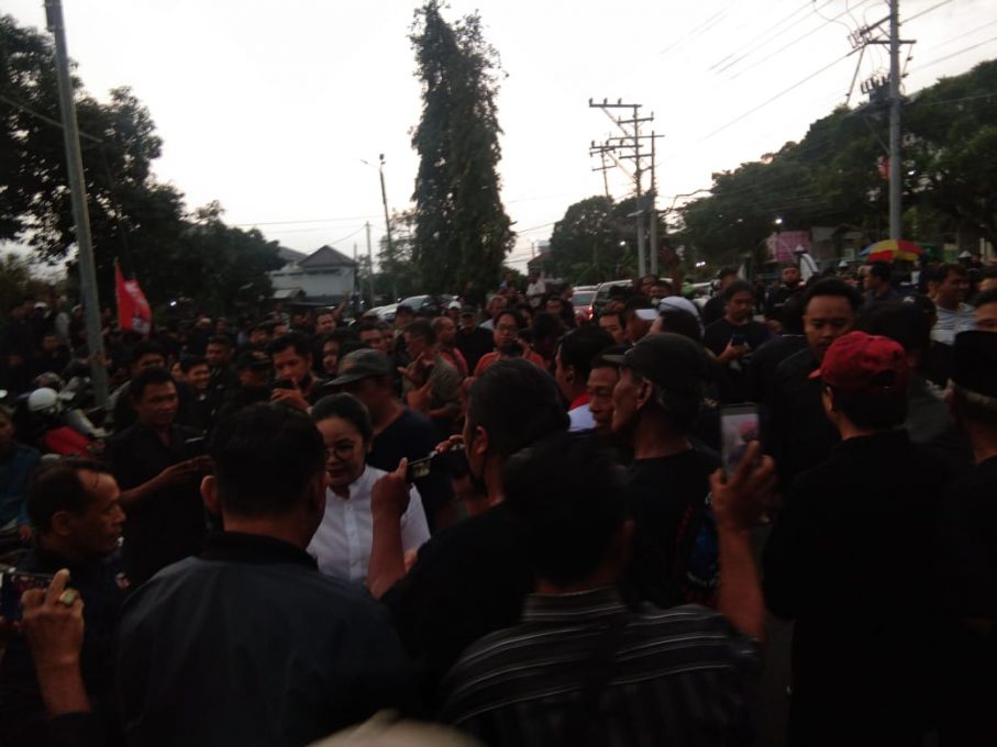 Ketua Tim Pemenangan Daerah Ganjar Mahfud Jawa Tengah, Agustina Wilujeng Pramestuti (baju putih) mengajak para relawan meninggalkan RSUD Pandan Arang. (yull/Fokusjateng.com)