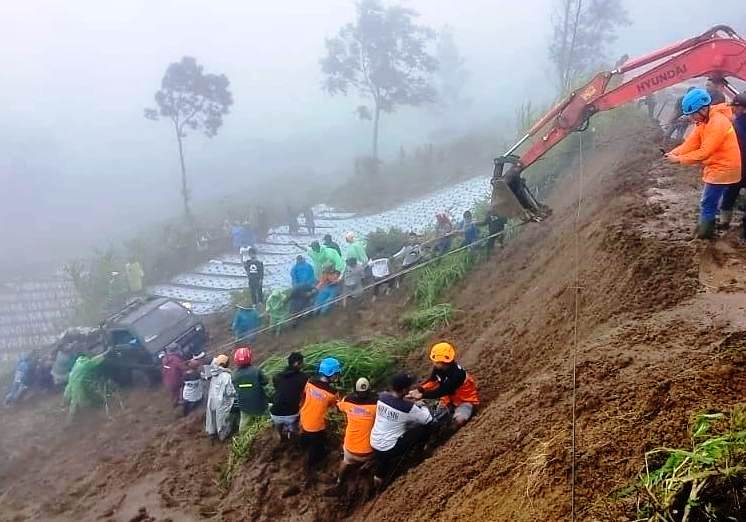 “Longsoran yang kedua sekitar pukul 05.30 WIB. Longsoran ini yang kemungkinan membawa kedua mobil itu ke bawah,” kata dia.