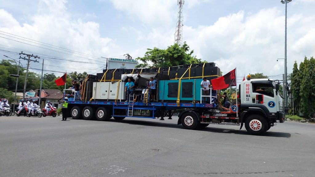 Fokus Jateng – BOYOLALI- Kampanye terbuka calon presiden (Capres) dan cawapres 02 Prabowo-Gibran diwarnai parade sound system berkekuatan besar (battle sound) dengan maskot boneka Prabowo-Gibran. Lalu diikuti rombongan yang mengendarai sepeda motor dan mobil. Mereka juga membunyikan klakson untuk memeriahkan suasana.