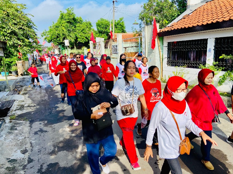 Kegiatan tersebut digelar di Desa Banaran, Kecamatan Grogol, Sukoharjo, Minggu (28/1/2024) pagi. Mereka mengenakan kaus Ganjar-Mahfud lalu berjalan santai menggunakan rute jalan-jalan kampung setempat sembari tak henti-hentinya mengajak warga kampung maupun pengguna jalan untuk memilih Ganjar-Mahfud pada Pilpres 14 Februari mendatang.