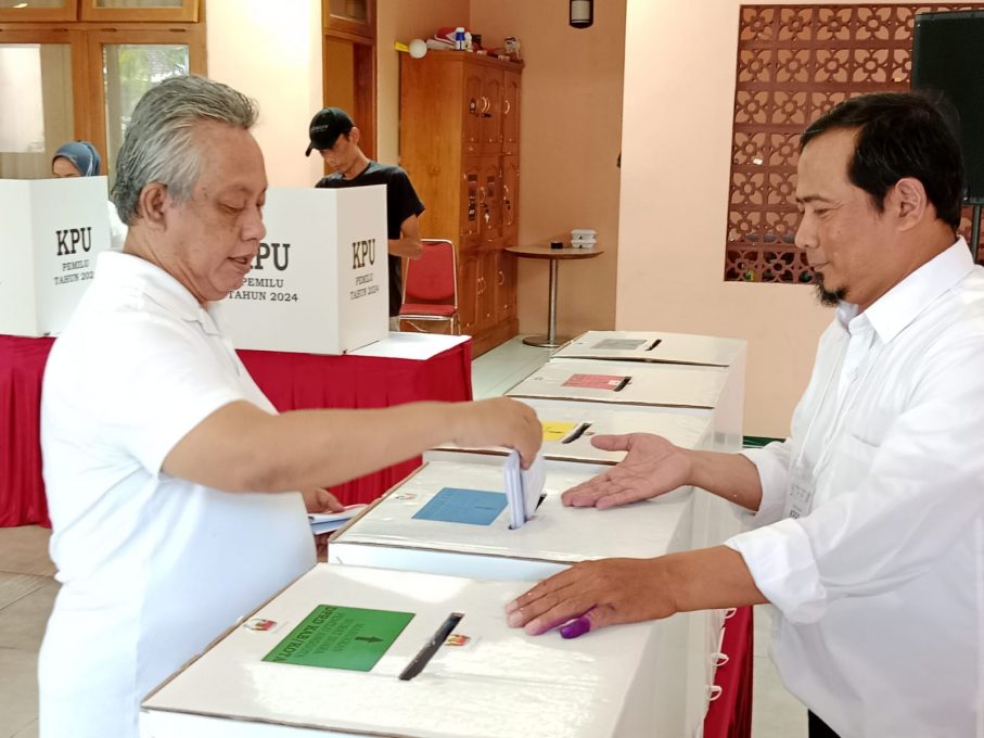 Fokus Jateng- BOYOLALI,- Suasana TPS 11 Tegalsari, Kelurahan Siswodipuran, Boyolali ramai didatangi pemilih sejak pukul 08.00, Rabu 14 Februari 2024. Para pemilih terlihat ceria, usai mencoblos mereka masih dipersilakan menikmati hidangan soto khas Boyolali.
