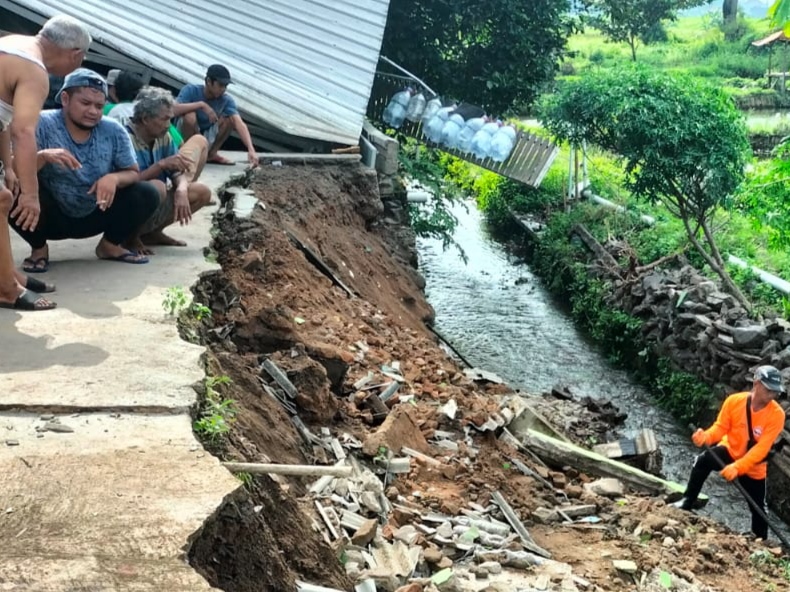 Menurut, Dadang Nugroho, pemilik warung mengatakan longsornya talud itu terjadi Senin 26 Februari 2024 kemarin petang.