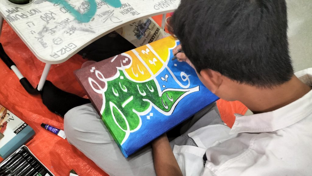 “Bertepatan dengan momentum bulan ramadhan, jadi literasinya tentang kaligrafi atau huruf arab,” jelasnya.