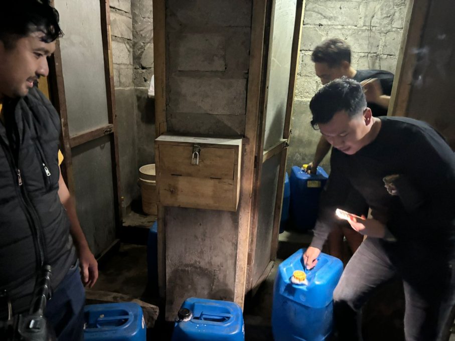Setelah digeledah, di dalam kios ditemukan minuman beralkohol jenis ciu 17 botol kemasan 1.5 liter yang disimpan di dapur. Kemudian di kamar mandi, polisi menemukan 7 drigen masing-masing berisi 35 liter.