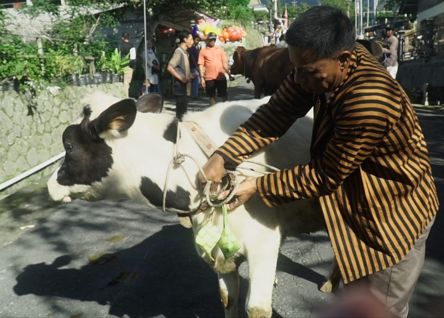“Secara filosofi tradisi ini untuk mempererat kerukunan dan silaturahmi. Lalu arak-arakan sapi ini imbasnya sapi saling bertemu. Yang awalnya belum bunting lalu timbul birahi dan bisa bunting. Lalu mitos juga bertani hasilnya juga melimpah. Selain untuk susu dan daging, kotoran dimanfaatkan untuk pupuk. Penyubur lahan warga,” tambahnya. (**)