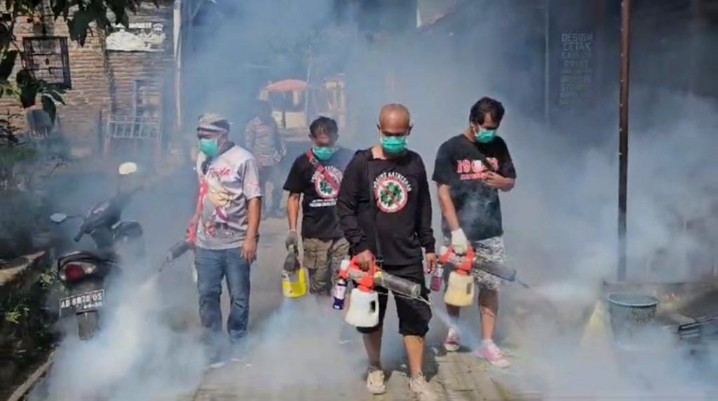 Fokus Jateng,- SOLO- Warga RT 2 dan RT 5 di RW 8 kampung Mojo Kelurahan Semanggi Kecamatan Pasar Kliwon Solo menggelar fogging atau pengasapan secara mandiri dengan menggandeng organisasi masyarakat (ormas) .