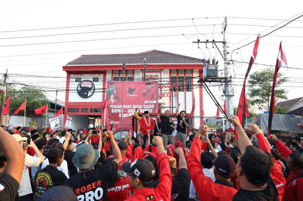 Diiring ratusan relawan pendukungnya, Rober mengembalikan berkas formulir pendaftaran pencalonan dirinya itu ke Sekretariat DPC PDI Perjuangan Karanganyar, pada hari terakhir penjaringan Bacabup – Bacawabup DPC Perjuangan, Senin (27/5/2024) sore.