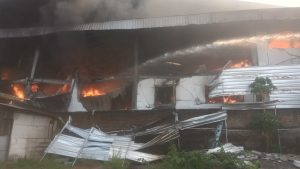 “Awalnya biasa saja, tapi tahu- tahu ada suara berderak sangat keras. Ketika kami melihat kea rah bangunan, ternyata pabrik telah terbakar hebat,” kata salah satu warga.