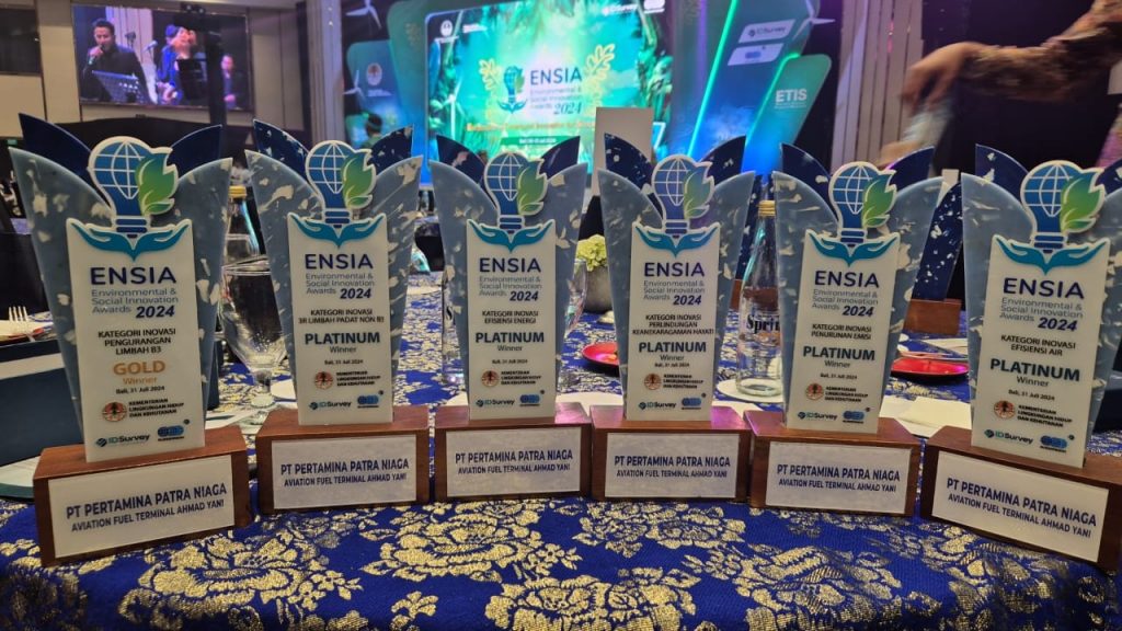 Ajang ENSIA 2024 menjadi saksi dedikasi PT Pertamina Patra Niaga RJBT yang berhasil membawa pulang 26 penghargaan platinum, 11 penghargaan gold, dan 20 penghargaan silver dalam kategori Inovasi Lingkungan dan Sosial yang mencakup tujuh topik utama yaitu Efisiensi Energi, Penurunan Emisi, Pengurangan Limbah B3, 3R Limbah Padat Non B3, Efisiensi Air dan Penurunan Beban Pencemar, Perlindungan Keanekaragaman Hayati, dan Inovasi Sosial.