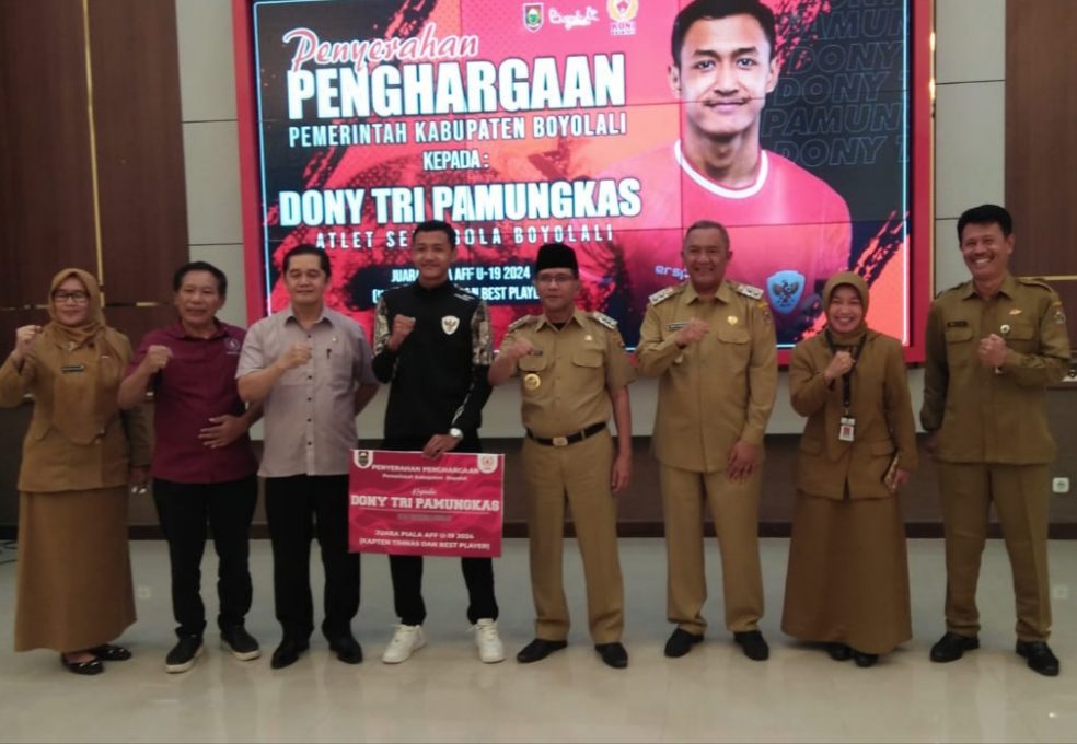 Fokus Jateng-BOYOLALI, – Kapten Timnas U-19 asal Boyolali, Dony Tri Pamungkas yang telah mwngarumkan nama Indonesia menjadi juara AFF 2024 sekaligus Best Player mendapat apresiasi Pemkab Boyolali.