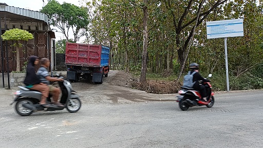 Operasinya puluhan kendaraan truk proyek tambang galian C ini tampak lalu-lalang keluar masuk di lokasi tambang. Aktivitas di atas tanah dengan luasan lebih dari satu hektare ini tidak tampak papan izin resmi tambang. Muatan truk tambang mengangkut tanah tidak ditutupi terpal, sehingga mengganggu pengguna jalan. “Sangat berdebu kalau di belakang truk,” keluh salah satu pengguna jalan tanpa menyebutkan namanya sambil lalu kemarin Senin 5 Agustus 2024.