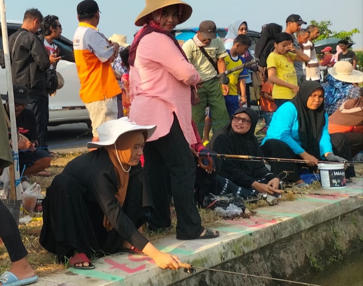 Unik dan meriah, para peserta pun antusias mengikuti lomba mancing yang biasanya didominasi oleh kaum lelaki.