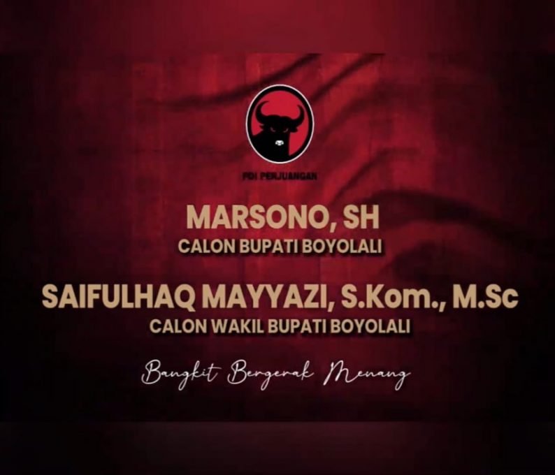Fokus Jateng= BOYOLALI – DPP PDIP resmi memberikan rekomendasi kepada bakal calon bupati Boyolali Marsono dan bakal calon wakil bupati Boyolali Saifulhaq Mayyazi pada Pilkada 2024. Rekomendasi diumumkan langsung oleh DPP PDIP dalam kanal Youtube DPP PDIP, Senin 26 Agustus 2024 siang. Pengumuman pasangan calon (Paslon) Marsono-Saifulhaq Mayyazi dilakukan bersamaan dengan enam pasang bakal calon gubernur dan wakil gubernur serta 60 Kepala daerah tingkat kabupaten kota.